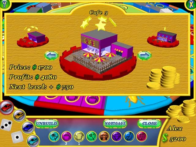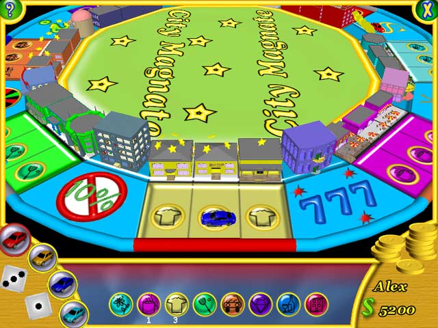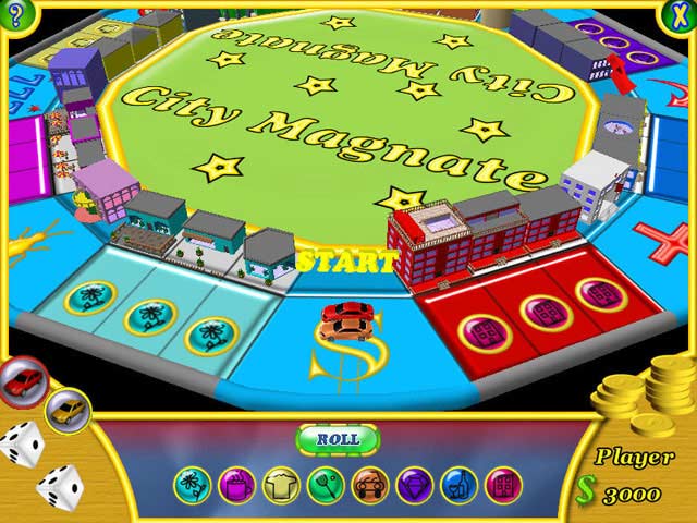 Wheel and deal your way to business success in City Magnate! Compete against up to 3 other would-be tycoons to be the last one standing. Roll the dice and drive across the 3D game board to a five-star restaurant or a cool fashion outlet. If you have enough money, purchase the business. You can also swap stores with other players and upgrade your properties once you corner a particular market! Can you surpass your rivals and top the Fortune 500? Start your empire today!