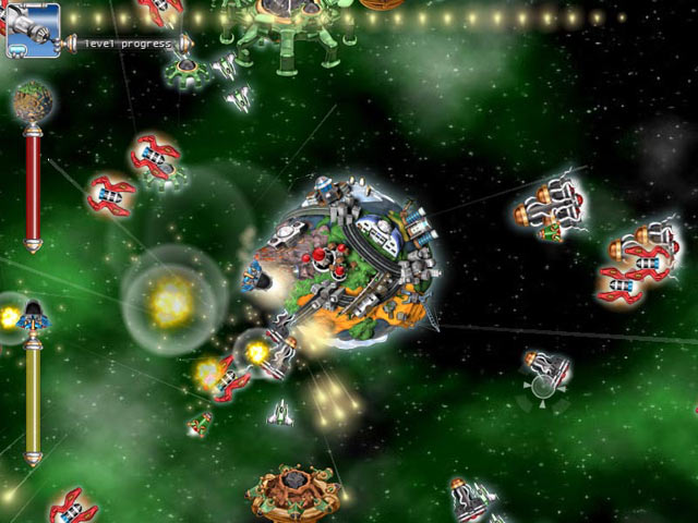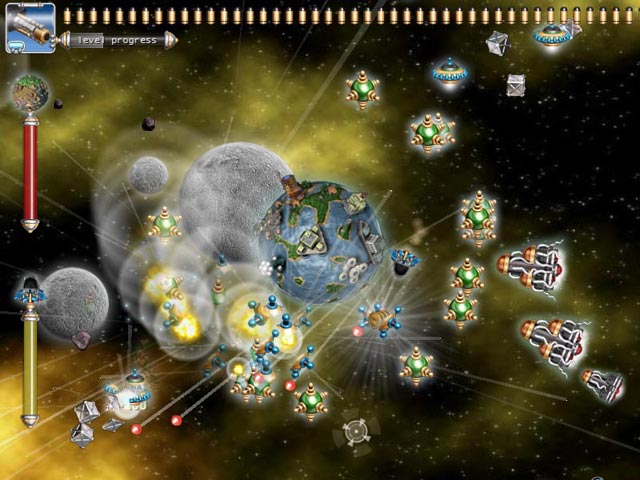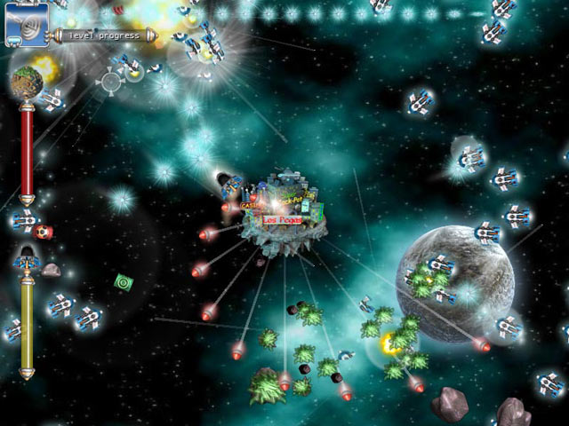 In Worlds Away, like the original Clash 'N Slash, you must defend your planet from waves of alien attacks that will arrive from all around the galaxy. This time the alien hordes are more diverse and clever! As you explore more than 70 thrilling levels, you'll face a ton of enemies and 12 tough bosses. Use the 19 fantastic weapons that you have at your disposal, along with 17 amazing power-ups, and you'll be cruising to victory, one wave at a time!