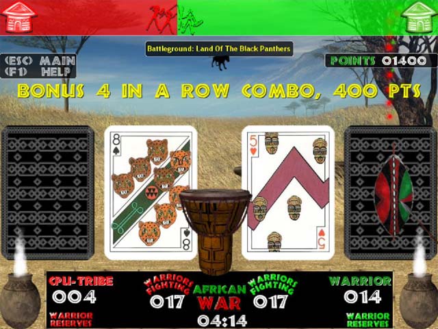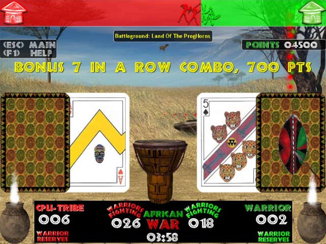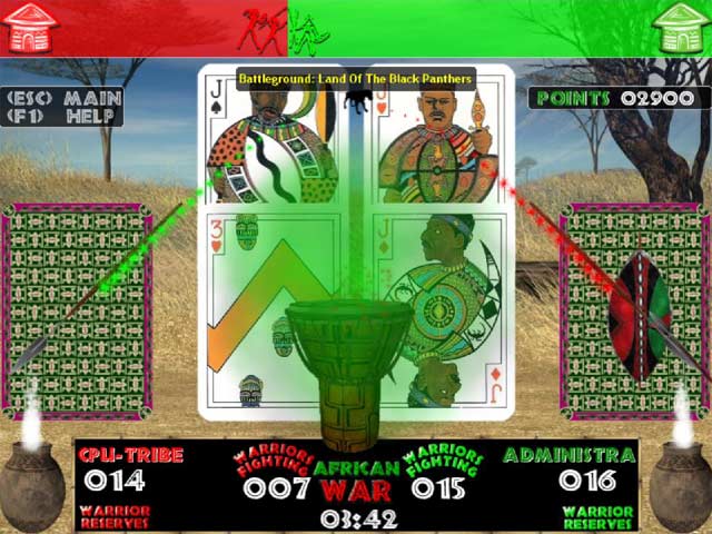 Play the exciting card game of War, with a rich African theme, as you enjoy the authentic tribal music and stunning 3D graphics and effects! With 4 different game modes, you can choose a quick battle, or go for the all out war where the action continues until one player has captured all of the warriors! The war is on!