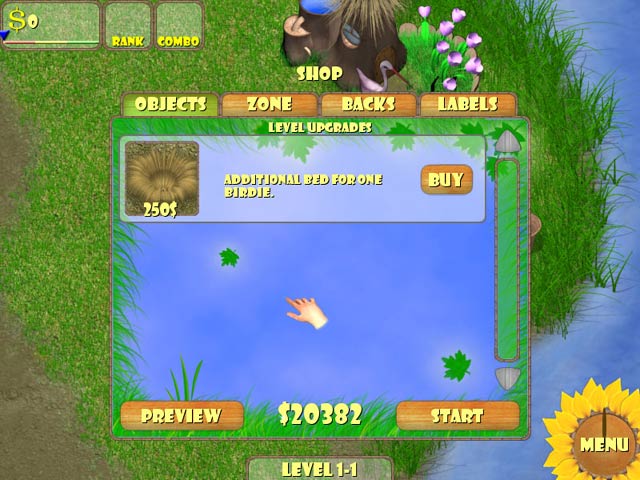 The mother birds of the world are tired of gathering food and babysitting all day, so they're leaving their hatchlings in your care! Tending to several fledglings at once isn't easy. You'll have to prepare food, collect water, sing lullabies and even entertain the young birds. Attend to the needs of your fine-feathered friends quickly or their satisfaction will drop and so will your points! But if you do well, you'll be able to make your nursery the best for miles around!