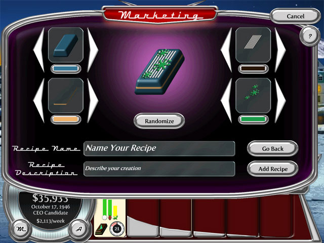 Travel the globe in search of flavorful and exotic ingredients to customize your own chocolate creations. You have complete control over your recipes, and how you customize your chocolates has an economic impact on your success. You'll use post-World War II economic and technological advances to customize your very own chocolate creations, assist the Baumiesters, and strive to become CEO of your very own chocolate empire!
