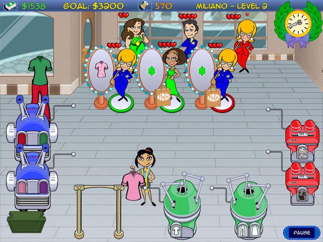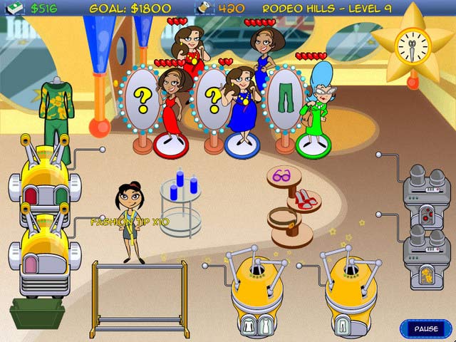 Help Bobbi make cool custom clothes! With the desire to find that perfect outfit every time, Dress Shop Hop incorporates the plate-spinning fun of the Diner Dash series with the added challenge of using a set of wacky machines to make the exact clothing match. From plain-colored shirts to wacky-patterned skirts, help each customer find exactly what they want...but don't forget to accessorize! Can you keep the customers happy and Bobbi's business afloat?