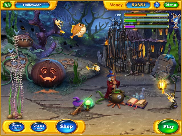 Build up your spooky Fishdom! Create the eerie atmosphere of an underwater haunted house with witches, vampires and ghosts in your aquarium. Have fun taking care of quirky tropical fishies and adding boo-tiful accessories to the virtual aquarium of your dreams! Win trophies as you polish your aquarium design skills in this brilliant match-3 sequel! Get splashed with Fishdom fun!