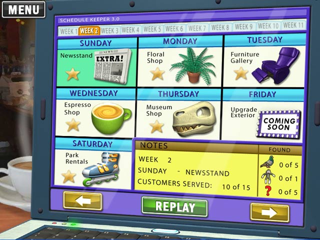 Turn your little shop into a big city success in this hidden object game from the creators of Little Shop of Treasures! Earn enough big city experience to renovate a run-down theater by helping shoppers in a variety of all-new locations including an Espresso Shop, Newsstand, and Spa. Each destination is a vivid scene of cleverly hidden objects for you to find. With trophies for excellent play, an all-new Bonus Round and loads of new surprises, Little Shop Big City is fun for the entire family!
