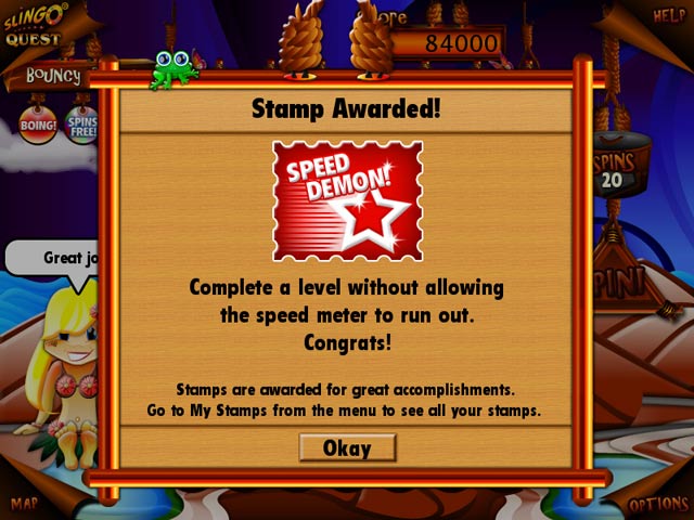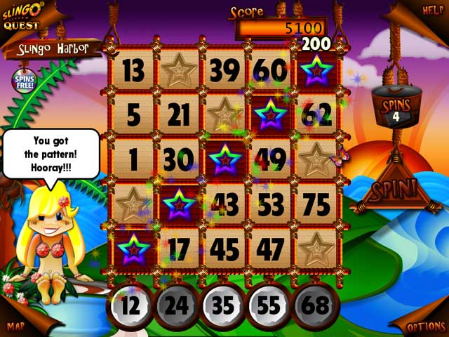 Are you ready for the next Slingo challenge? Slingo Quest takes your favorite Slingo game the next level and introduces brand new fun ways to play! Get Super Slingos on the multi-card games. Check out the Bounce Slingos that rebound off of walls. Take on the Pirate in Pirate's Fortune. And, if you do something great in the game, you can get a Slingo Stamp reward! It's 60 levels of the classic Slingo that you know and love, with some brand new fun mixed in! Start a quest today!