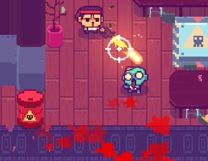 It'a a zombie action shootem up game. Your goal is to to push your enemies into traps with your gun. Keep a look out, the traps scattered all over each level! Shoot like crazy, try not to be eaten by the zombies... ur brains like their current location and would not appreciate it if they were in the mouth of a zombie.