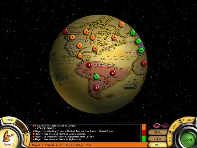The world is at war, and you are in command of an army fighting for global domination. Organize your forces in a ruthless campaign to crush your enemies and take their territories in this fast paced game of strategy, negotiation, and luck. See the classic game come to life with more ways to play, advanced map options, superior graphics, and animated battles. It's up to you to deploy your troops, attack your enemies, and even betray your allies, in an aggressive effort to take over the world!
