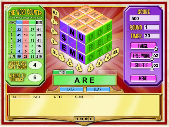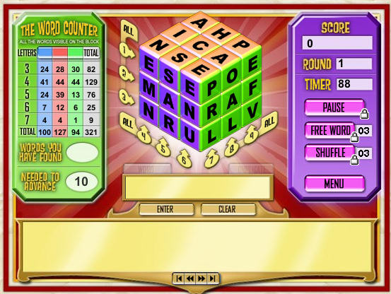 Get ready for Chapter One in a series of exciting 3-D puzzle fun! In the game Writer’s Block - Blockbuster you can create as many words as possible using the letters on the block. Spin it, flip it, rotate the block and get going! This game is going to keep you busy!